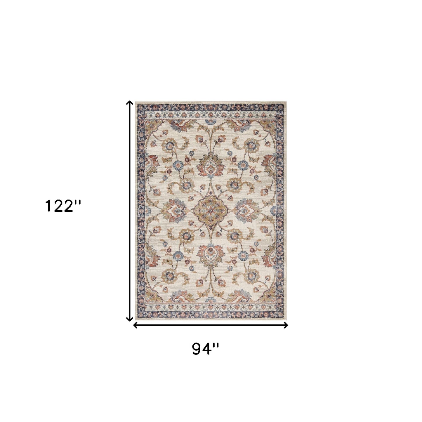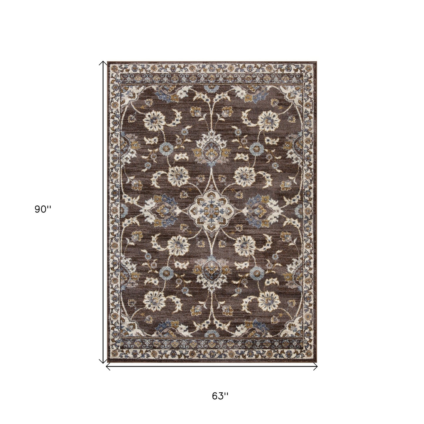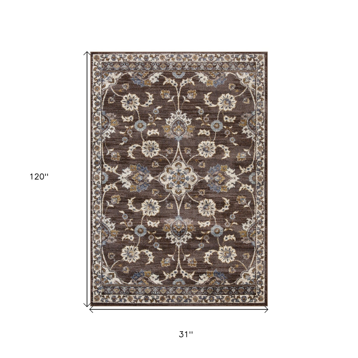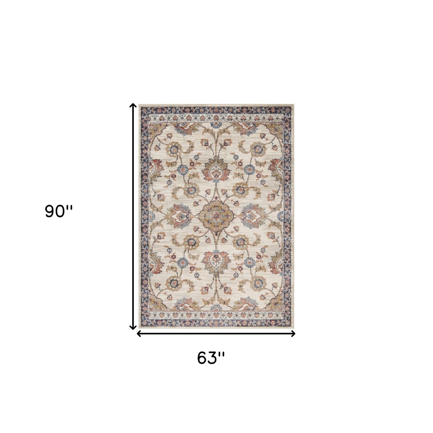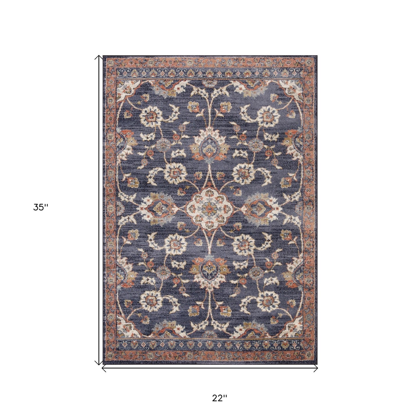 2' X 3' Navy Blue Floral Power Loom Area Rug With Fringe