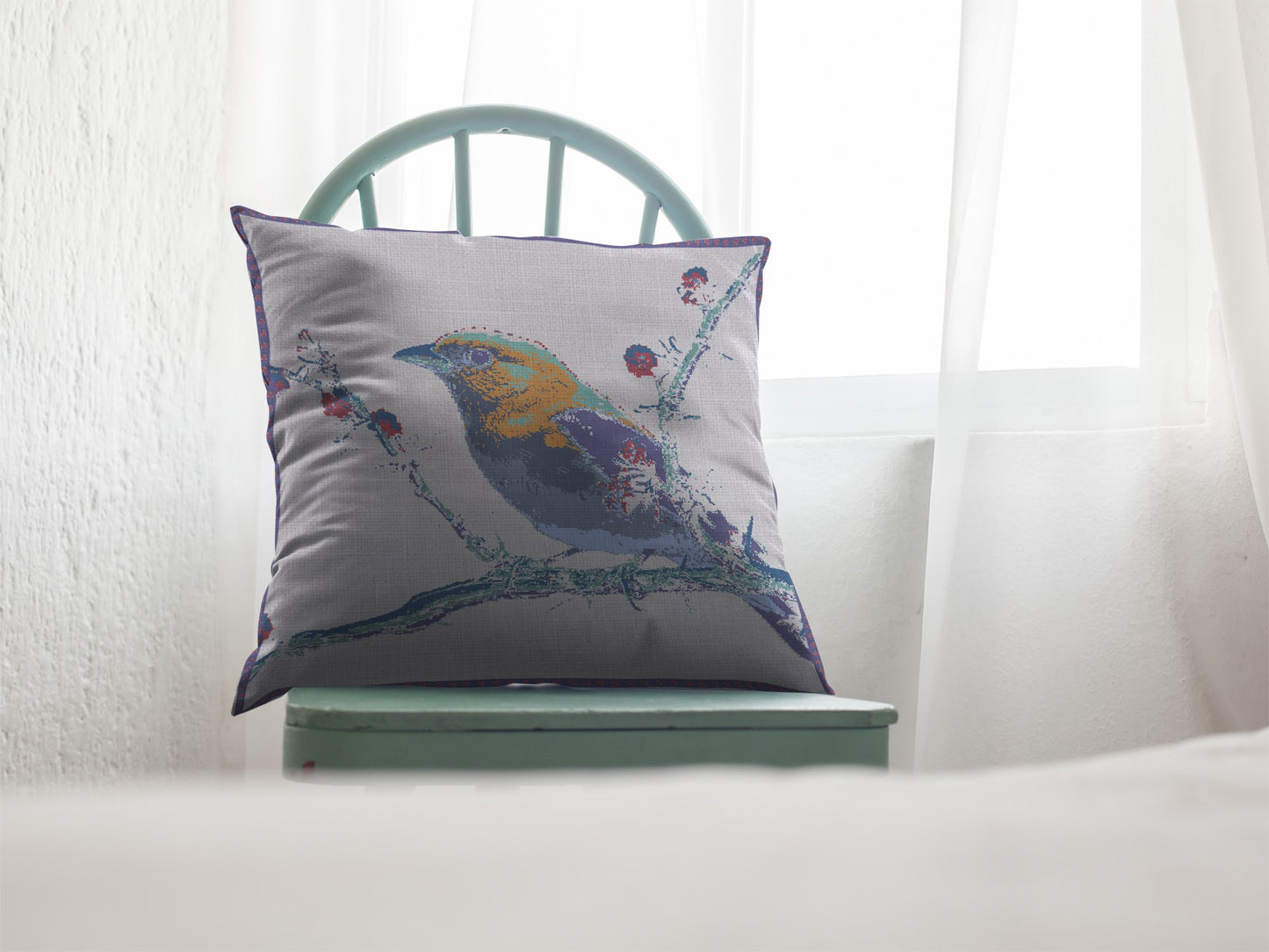16” Blue White Robin Indoor Outdoor Zippered Throw Pillow