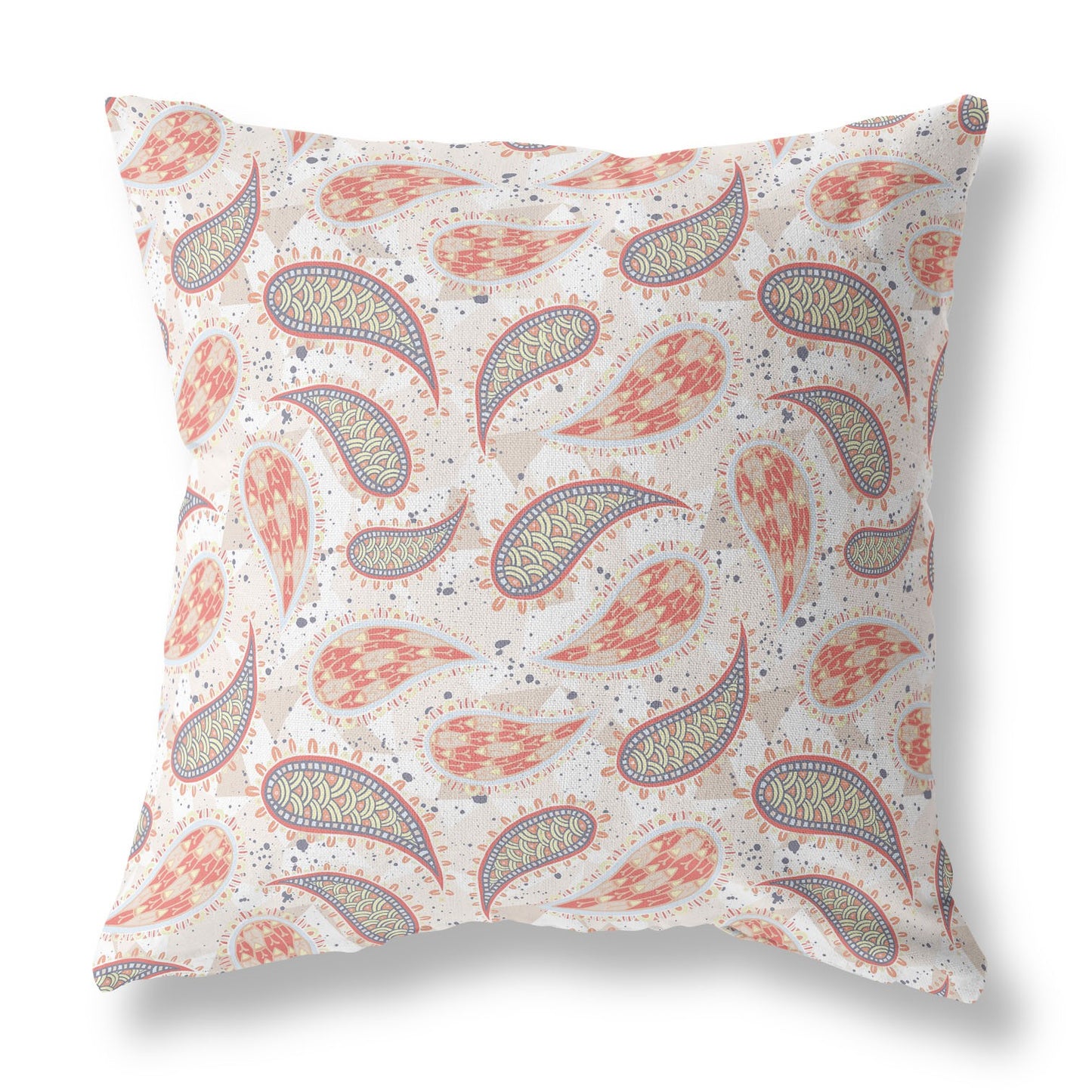 16?ǥ Red Beige Boho Paisley Indoor Outdoor Throw Pillow