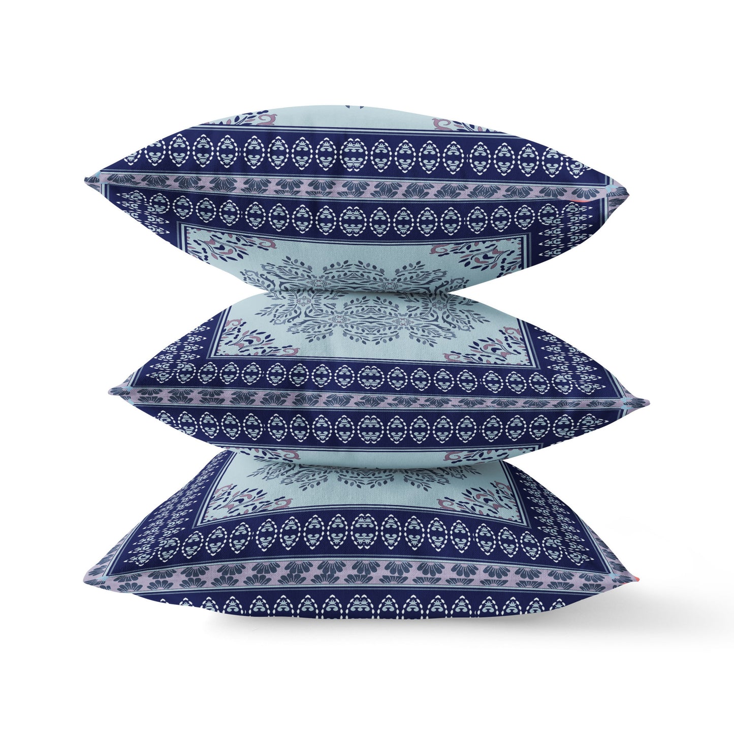 16" X 16" Dark Blue And Green Blown Seam Geometric Indoor Outdoor Throw Pillow