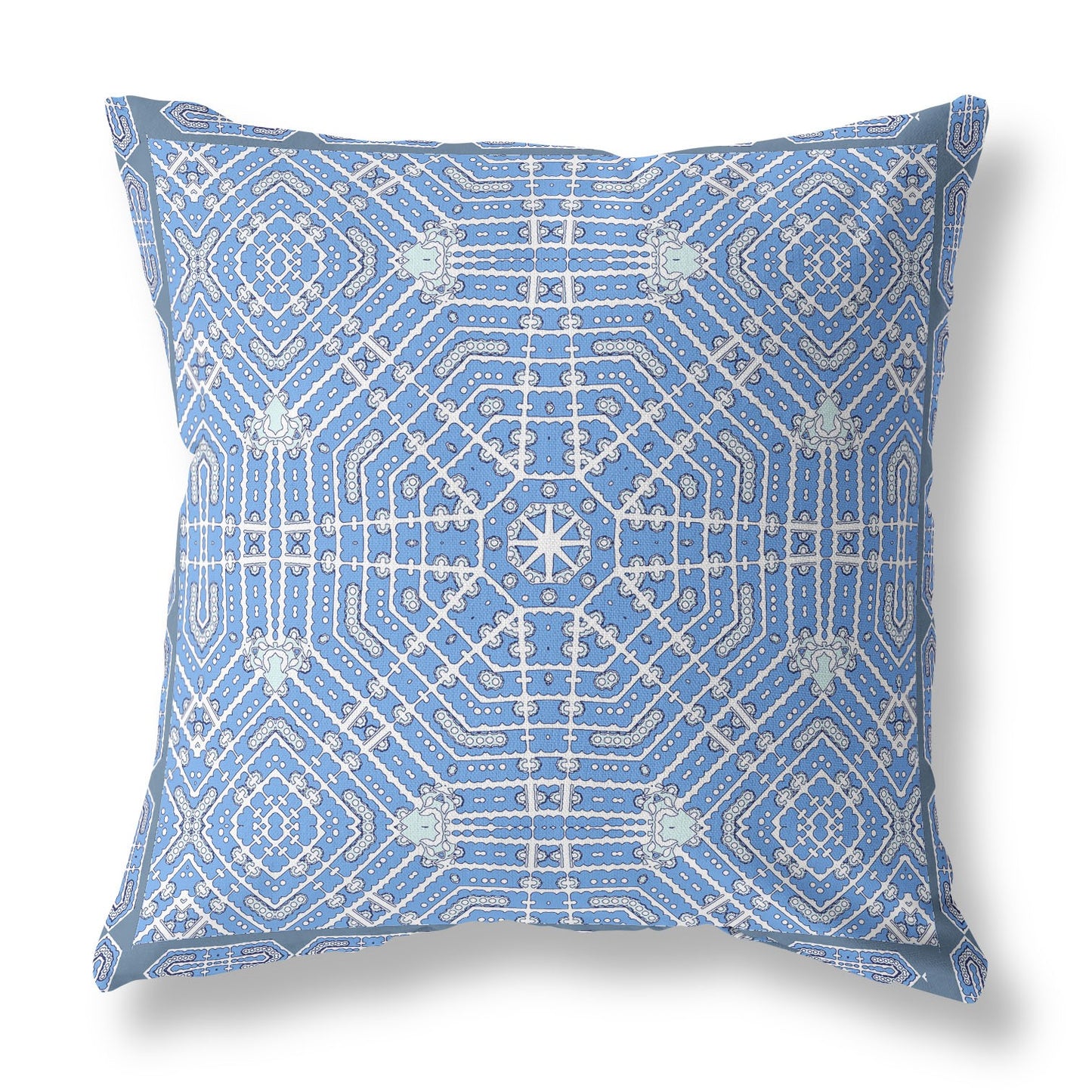 18” Blue White Geostar Indoor Outdoor Throw Pillow