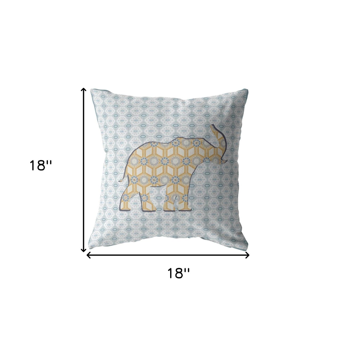 18" Blue Yellow Elephant Indoor Outdoor Throw Pillow