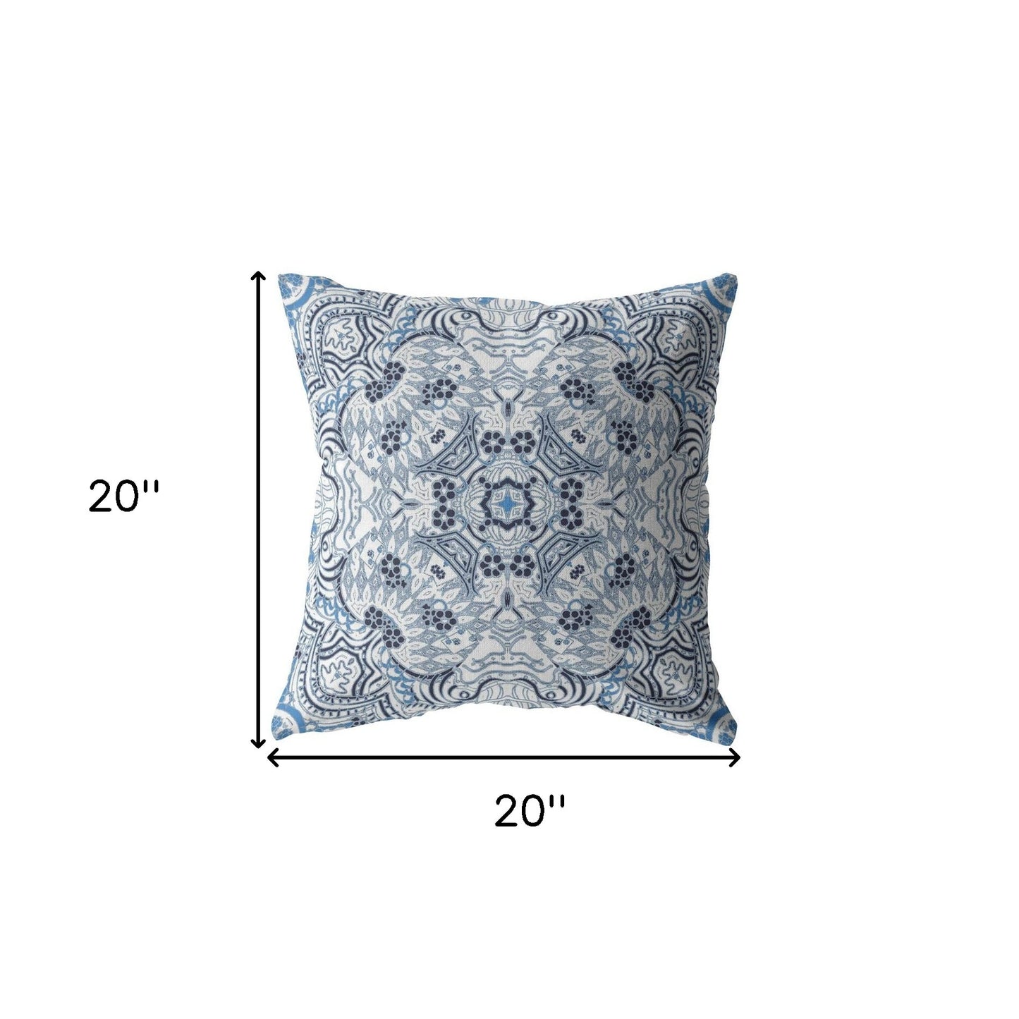 18” Light Blue Boho Ornate Indoor Outdoor Zippered Throw Pillow