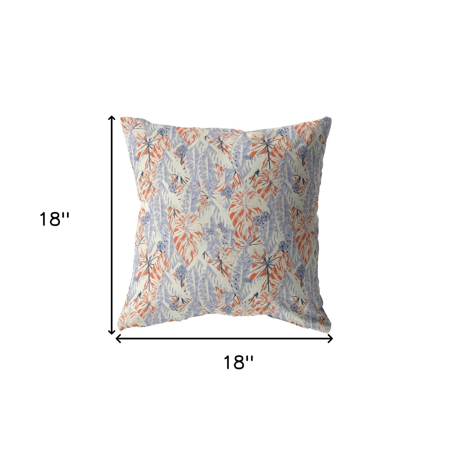 18" Orange Lavender Tropics Indoor Outdoor Zippered Throw Pillow