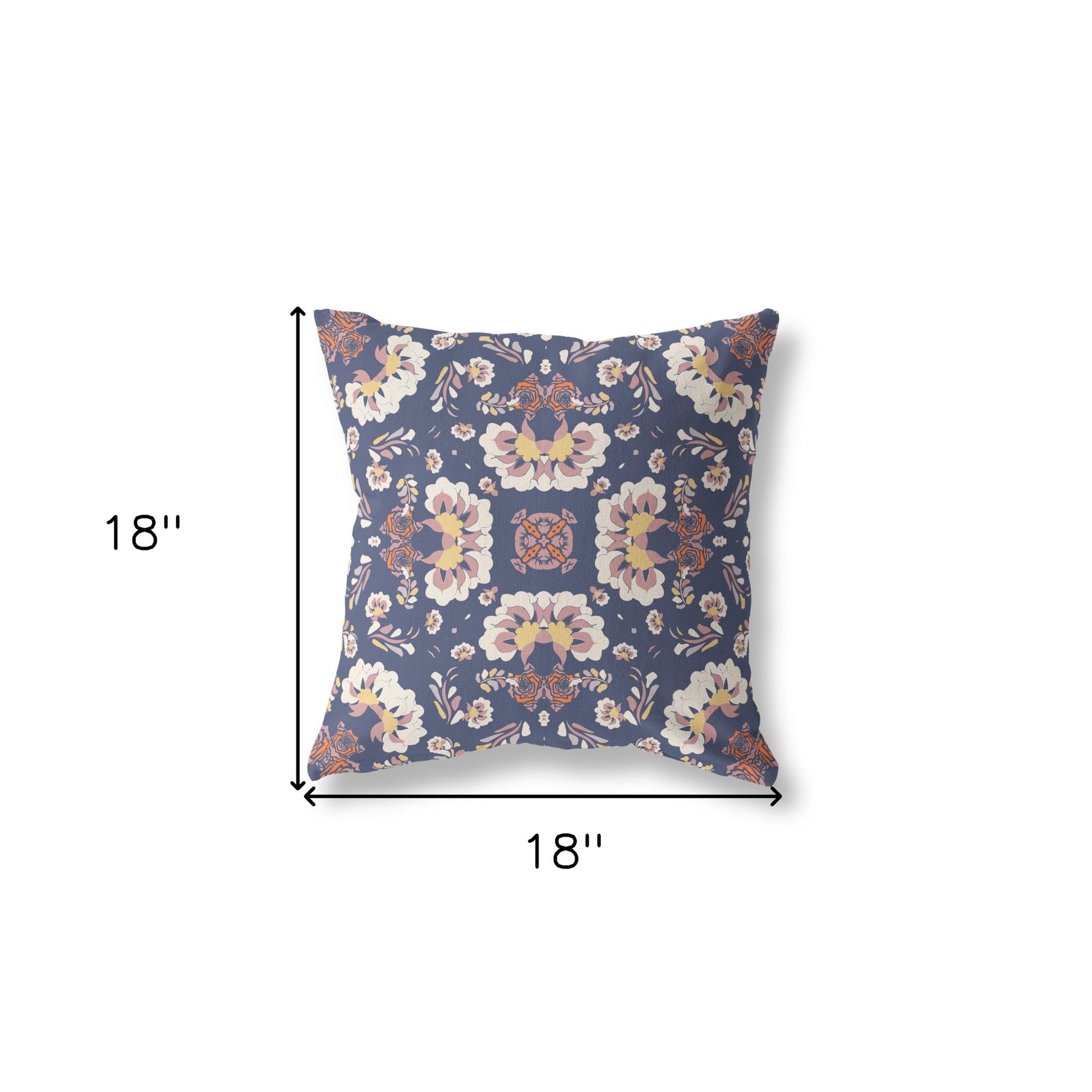 18" X 18" Blue And White Zippered Geometric Indoor Outdoor Throw Pillow