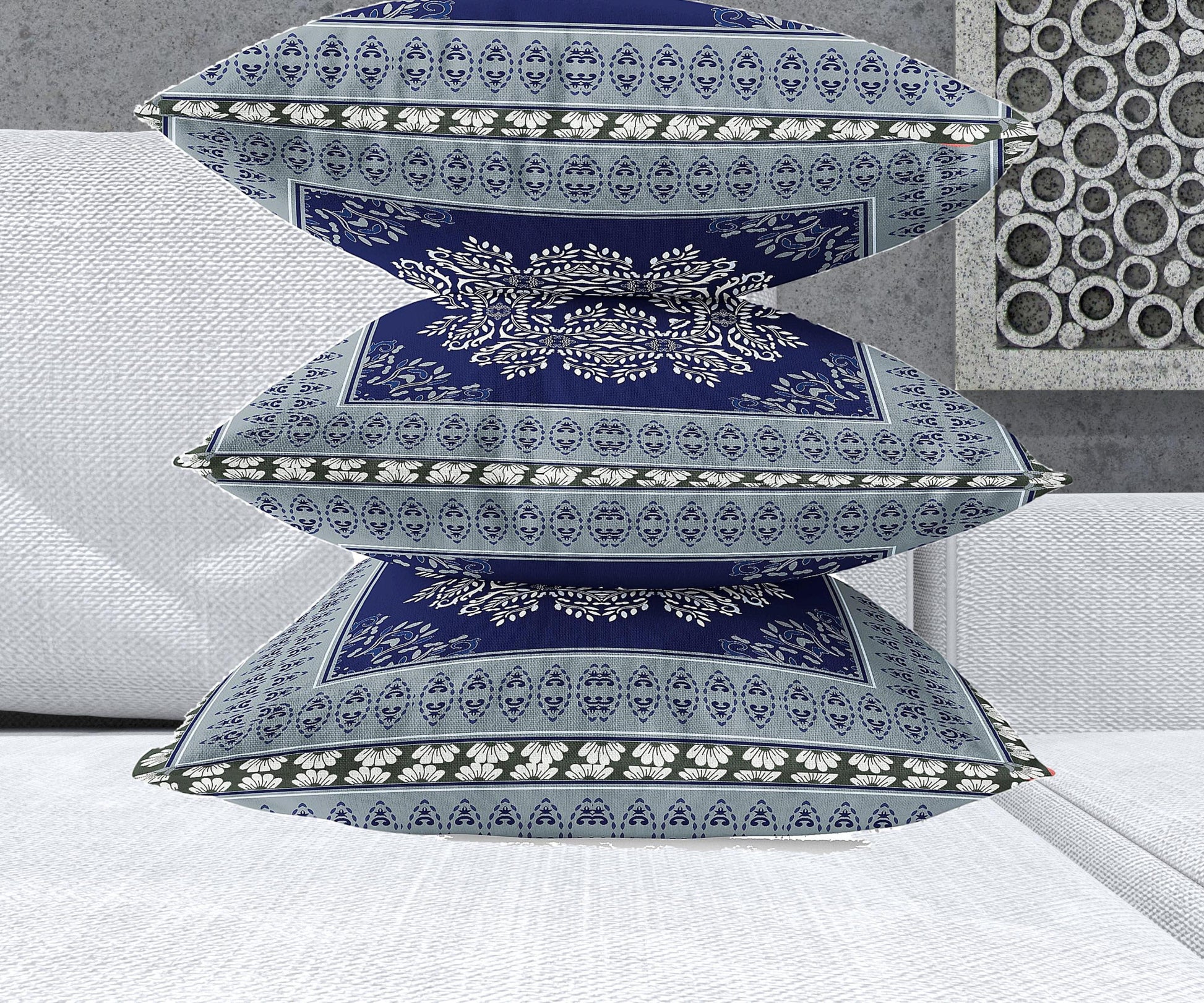 18" X 18" Indigo And Green Blown Seam Damask Indoor Outdoor Throw Pillow