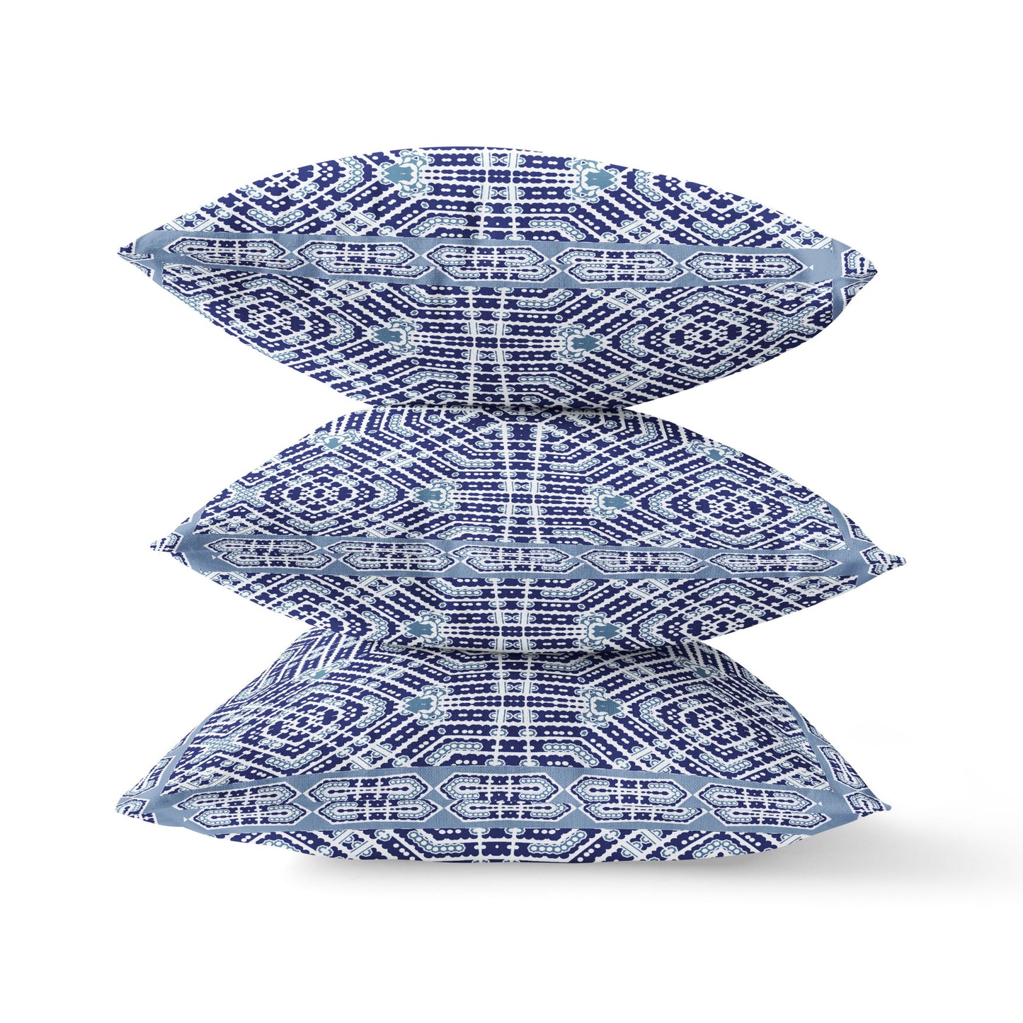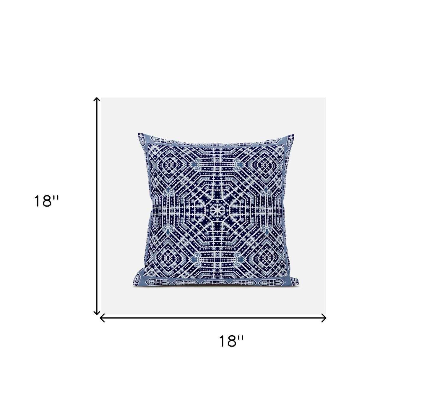 18" X 18" Indigo And Green Blown Seam Geometric Indoor Outdoor Throw Pillow