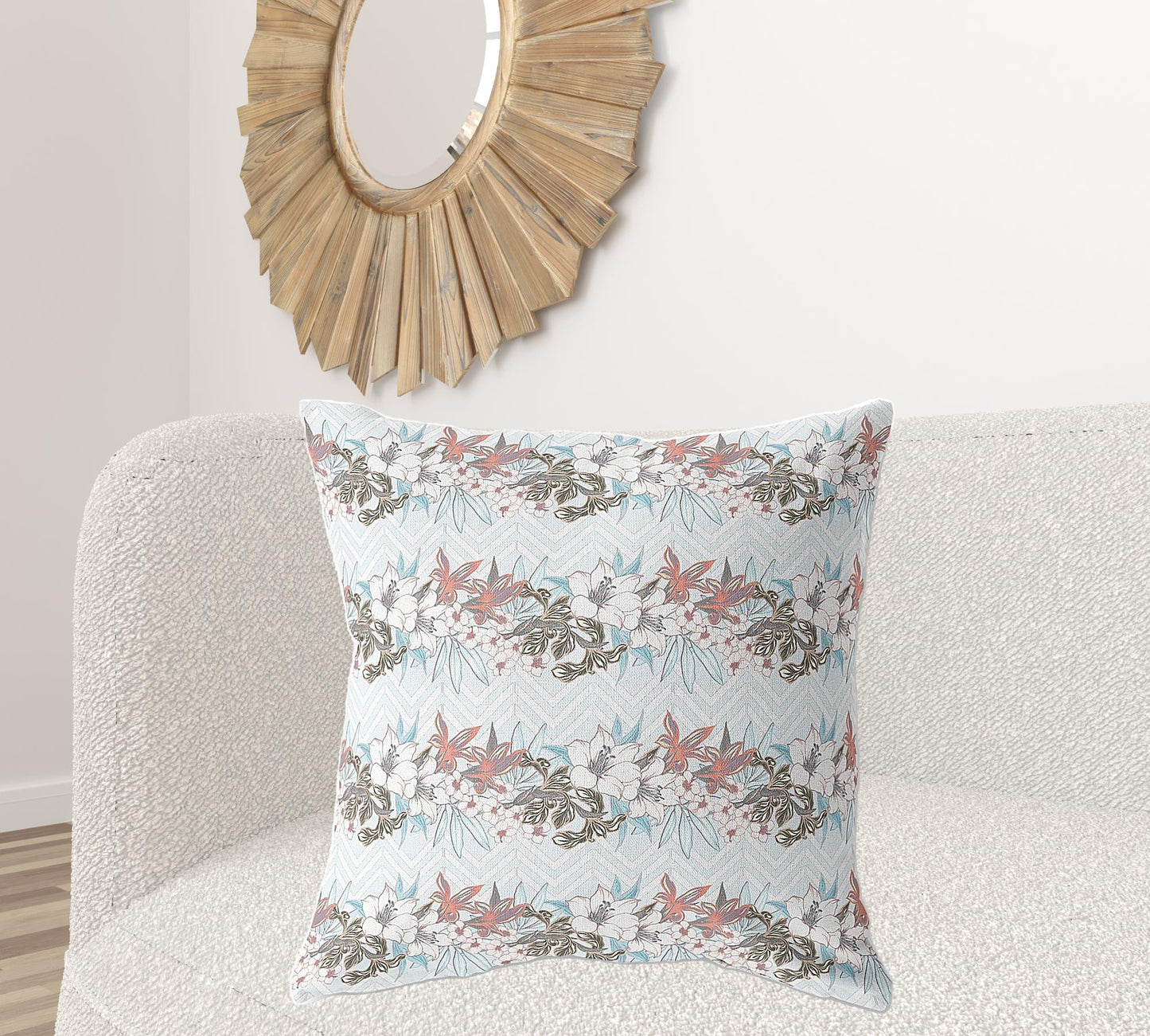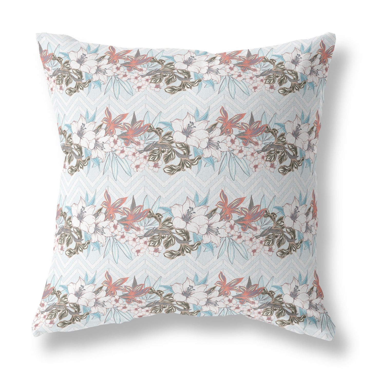 18" X 18" Light Blue Blown Seam Floral Indoor Outdoor Throw Pillow