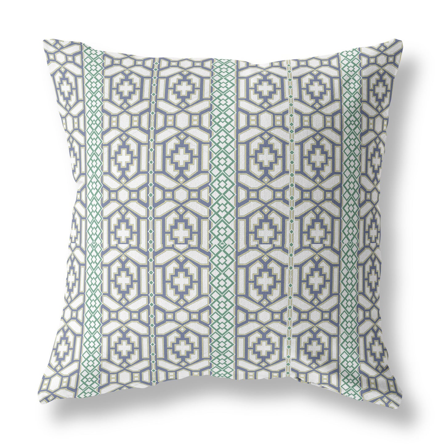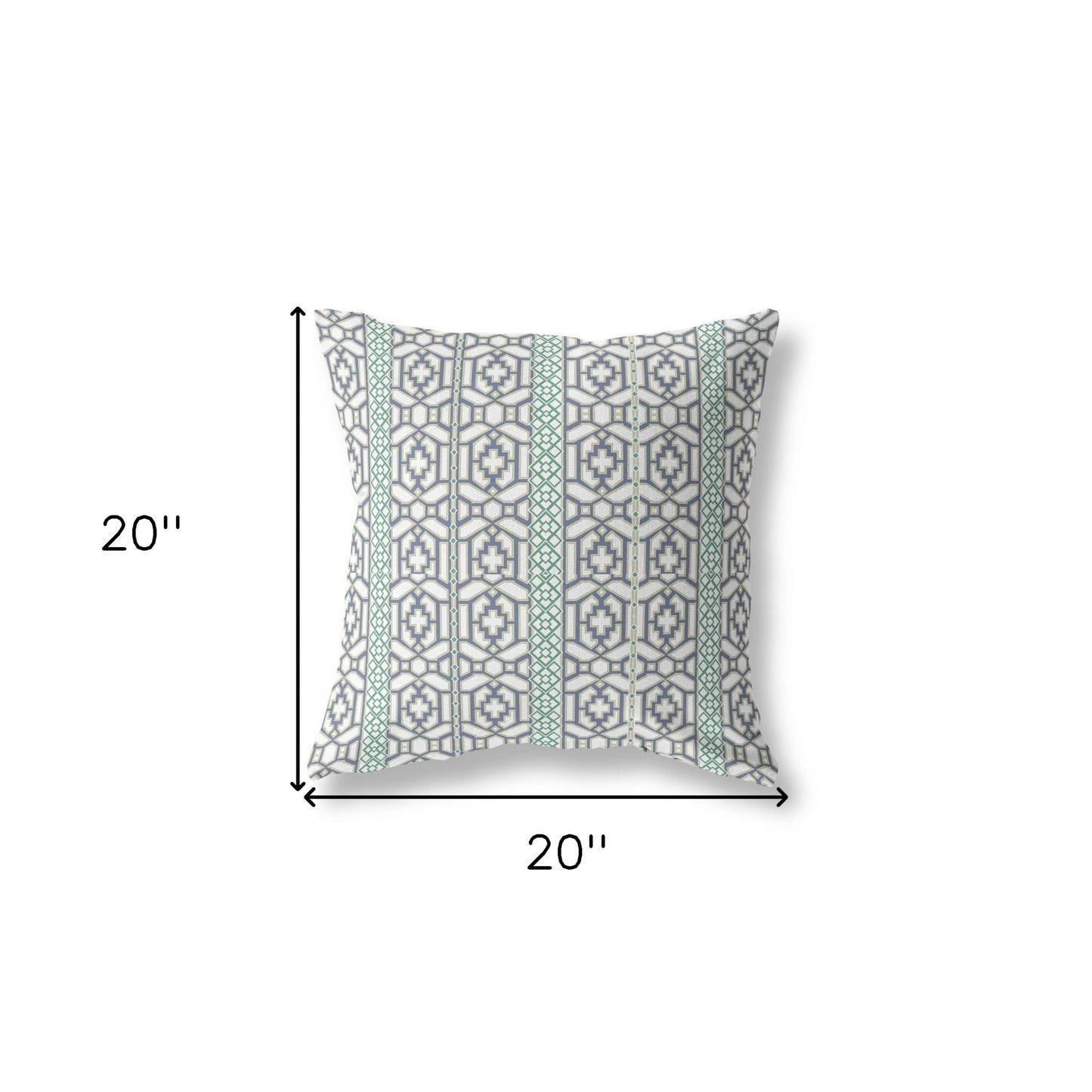 18" X 18" White And Gray Zippered Geometric Indoor Outdoor Throw Pillow