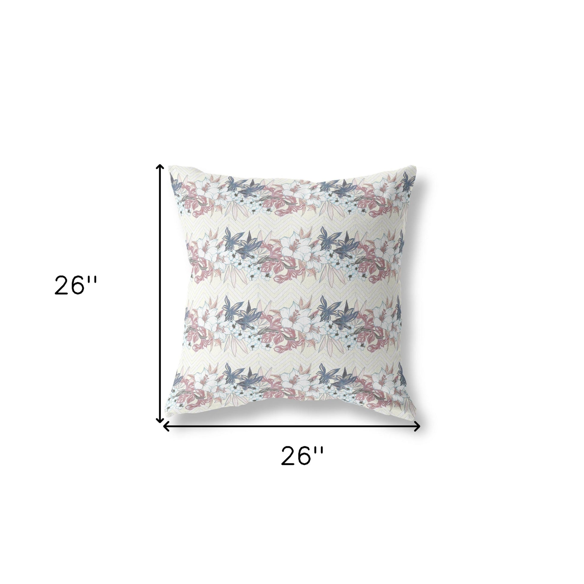 18" X 18" White And Pink Blown Seam Floral Indoor Outdoor Throw Pillow