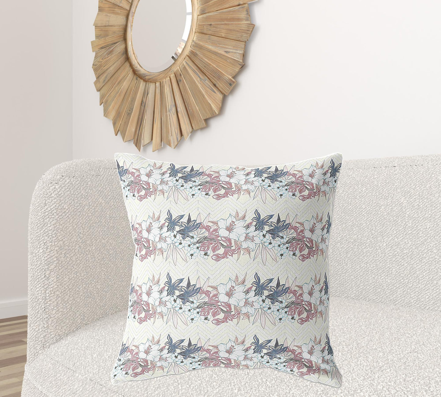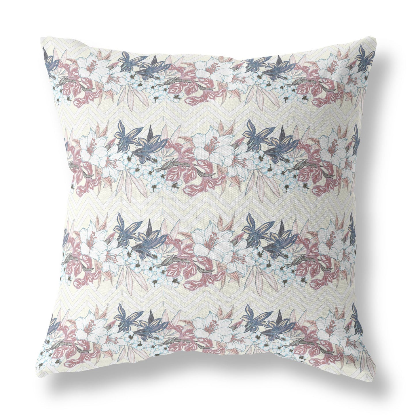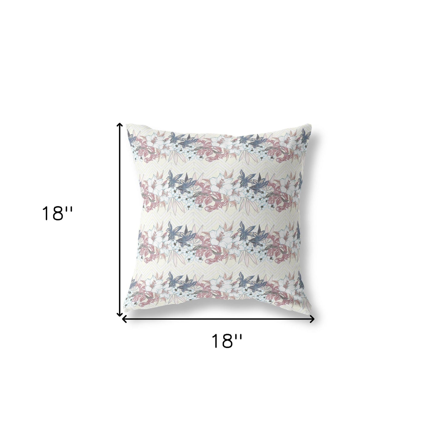 18" X 18" White And Pink Blown Seam Floral Indoor Outdoor Throw Pillow