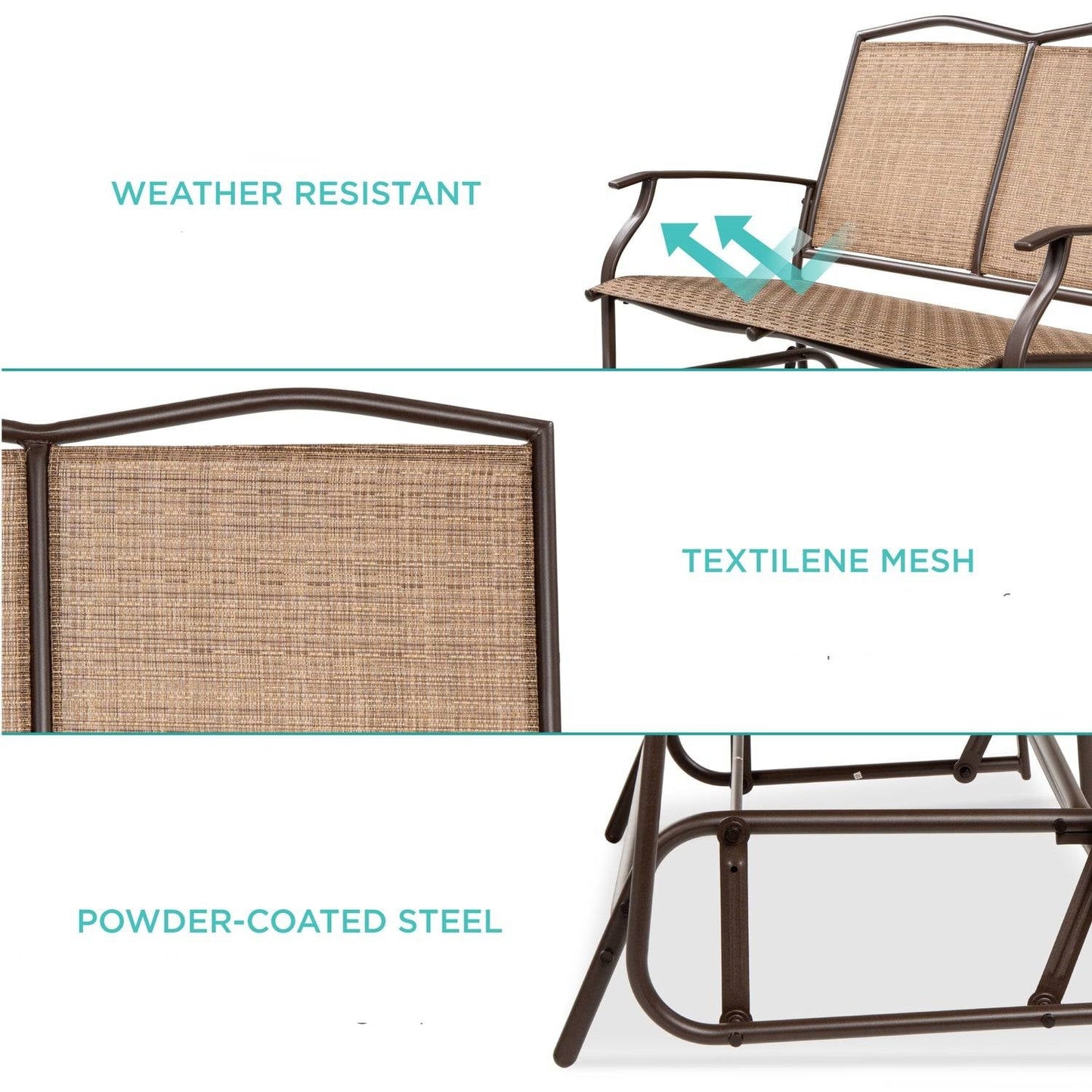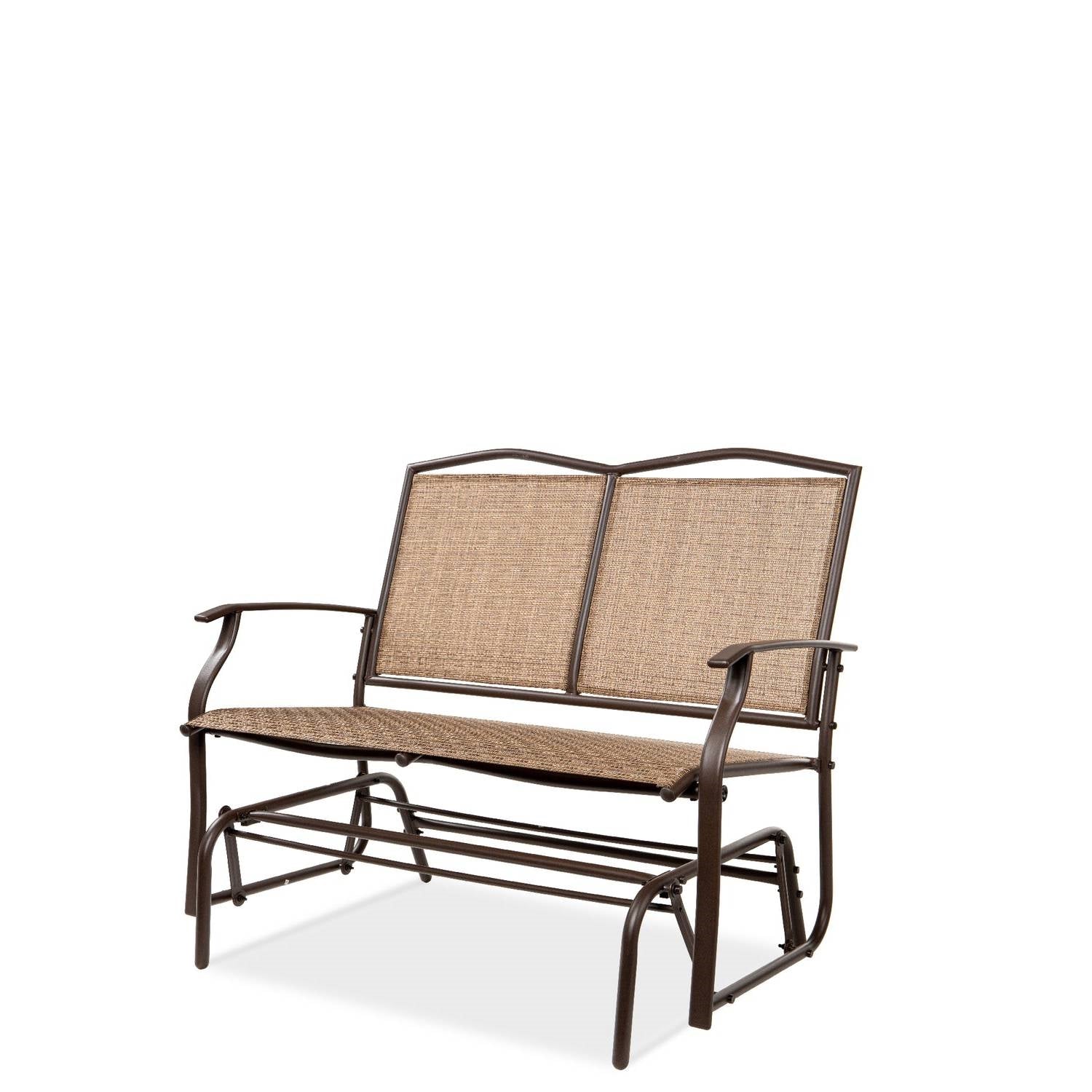 2 Seater Mesh Patio Loveseat Swing Glider Rocker with Armrests in Brown