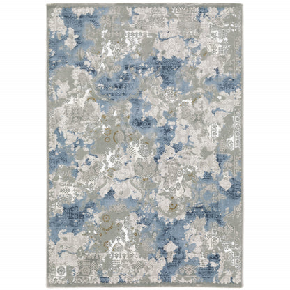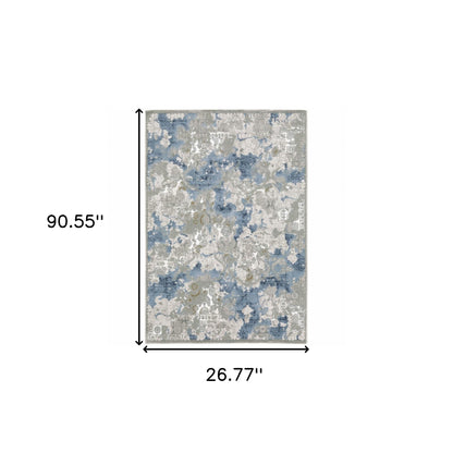 2' X 8' Grey Blue Ivory Navy Beige And Brown Abstract Power Loom Stain Resistant Runner Rug