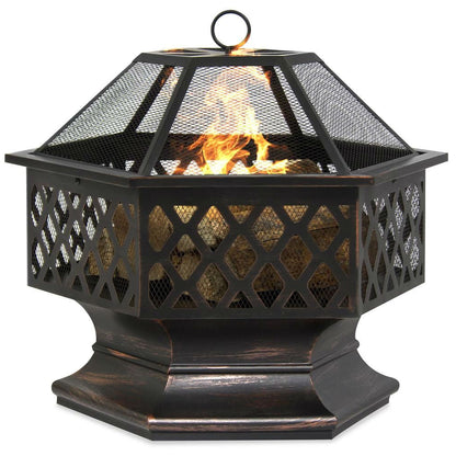 24 Inch Steel Distressed Bronze Lattice Design Fire Pit With Cover