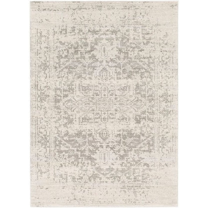 3' x 5' Distressed Oriental Area Rug in Light Grey / Beige