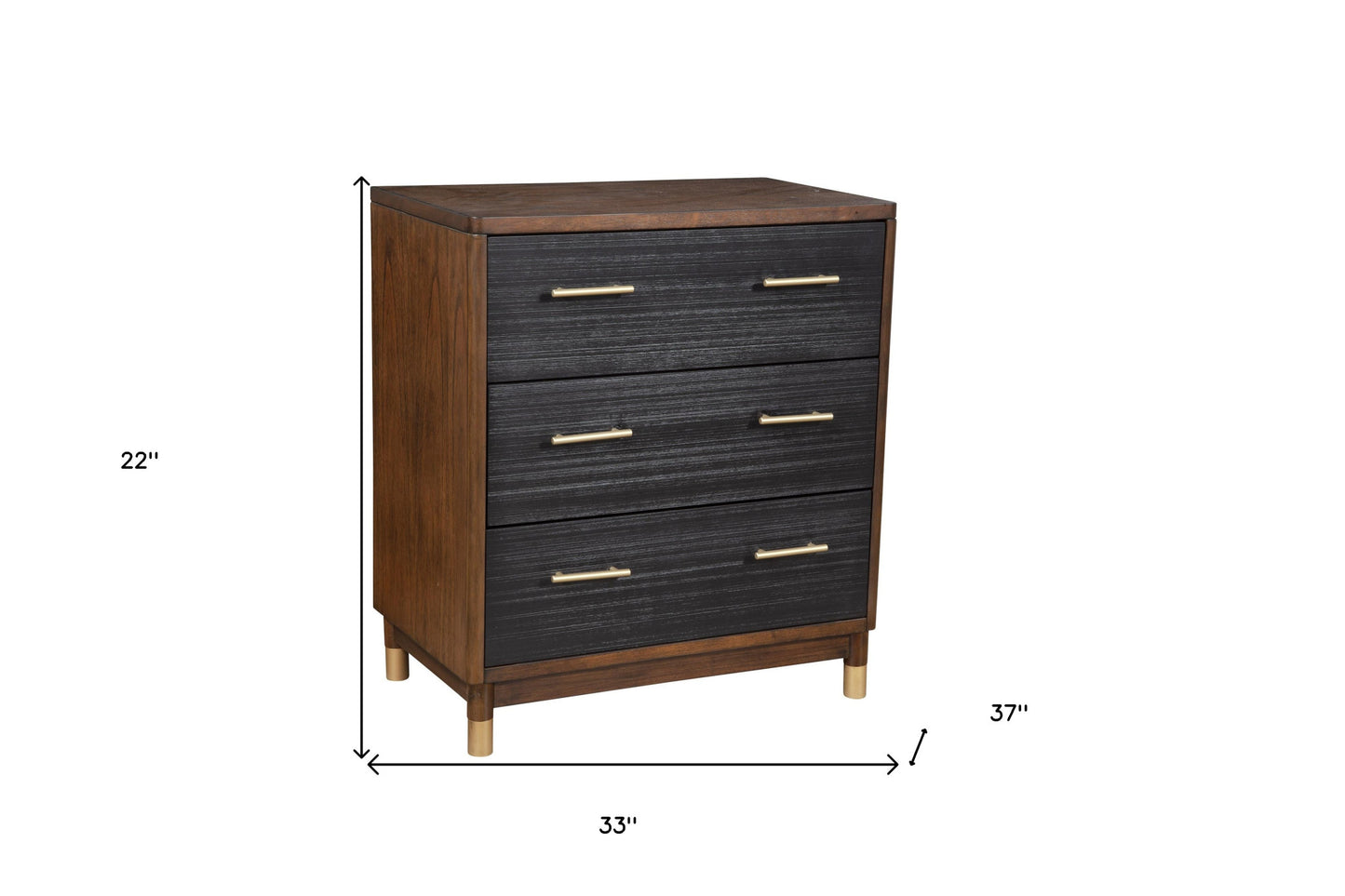 33" Brown and Black Solid Wood Three Drawer Chest