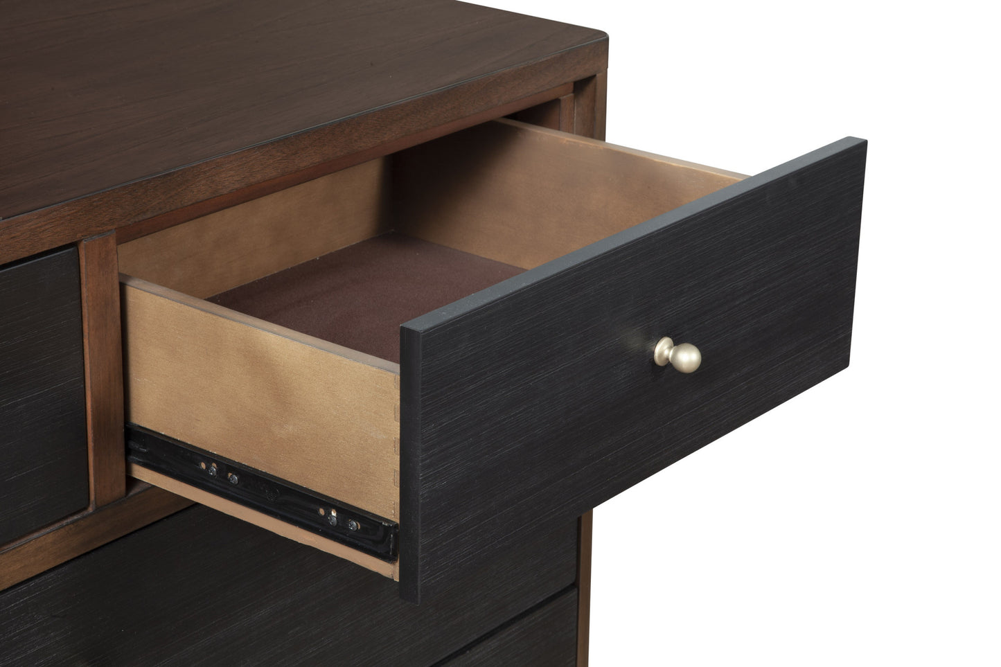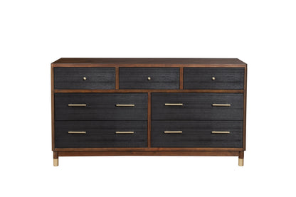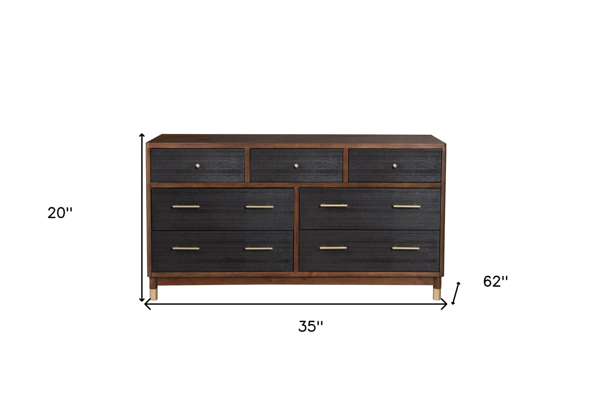 35" Brown and Black Solid Wood Seven Drawer Double Dresser