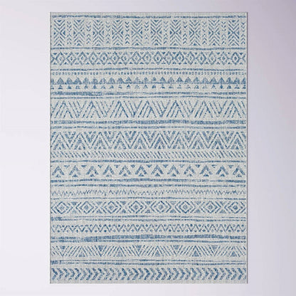 5 ft. x 7.5 ft. Blue Grey Chevron Coastal Boho Style Indoor Outdoor Area Rug