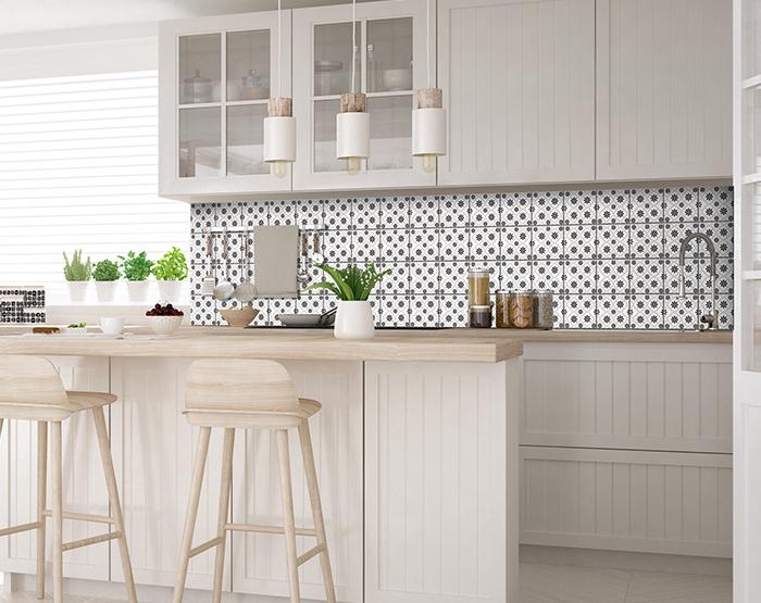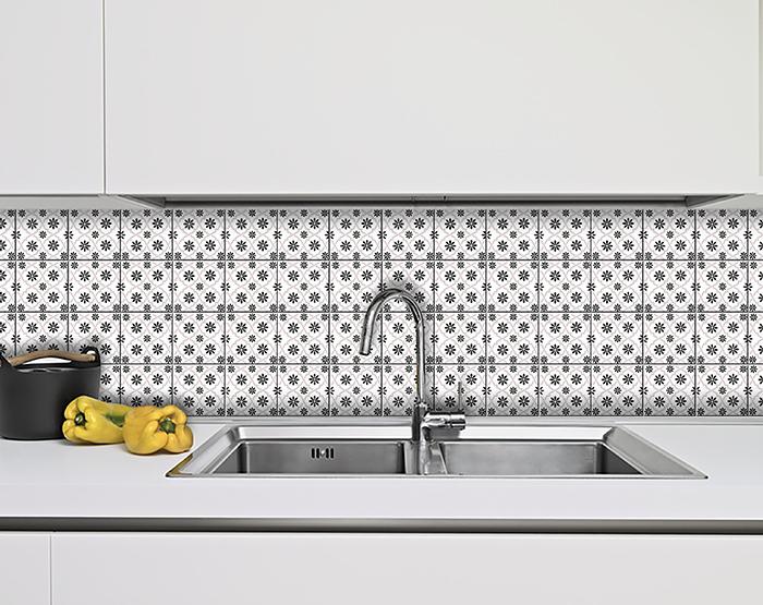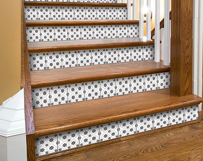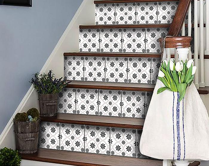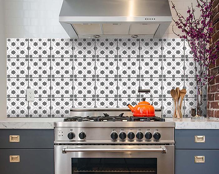 The possibilities are endless with these 5" x 5" Black and White Lil Daisy Peel and Stick Removable Tile stickers. These fabulous peel and stick tiles will add lots of color, sophisticated flair, and fun design to your kitchen backsplash, fireplace mantel, stair treads, half wall, bathroom or nook. These 5" square tile stickers in multiple bright fun colors and designs are an easy, no mess solution to complete a personalized and colorful room makeover. Easy to apply on any clean dry flat surface, and easy to remove. Multi use and multi-room appeal make this design option is perfect for renters, landlords, college students and homeowners alike. Peel and stick tile decals make it easy to turn your space into a home. Removable without damage to surfaces. One kit contains 24 stickers. Kit includes a single style tile design.
