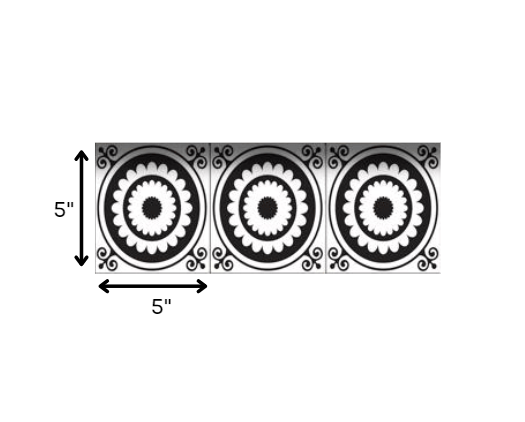 5" X 5" Black and White Posy Peel and Stick Removable Tiles