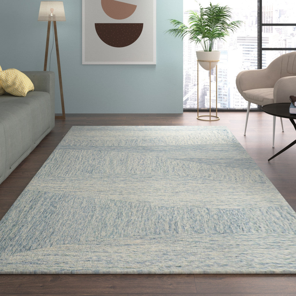 5' X 7' Blue Wool Abstract Hand Tufted Area Rug
