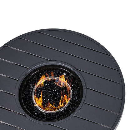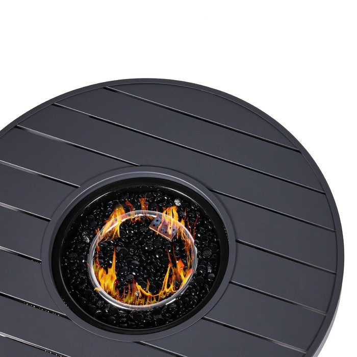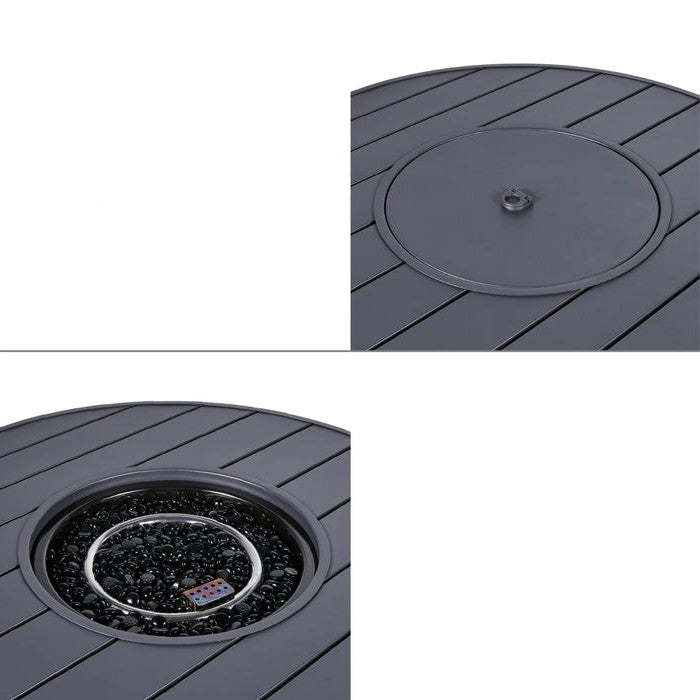 50,000 BTU Grey Wicker Round LP Gas Propane Fire Pit w/ Faux Wood Tabletop and Cover