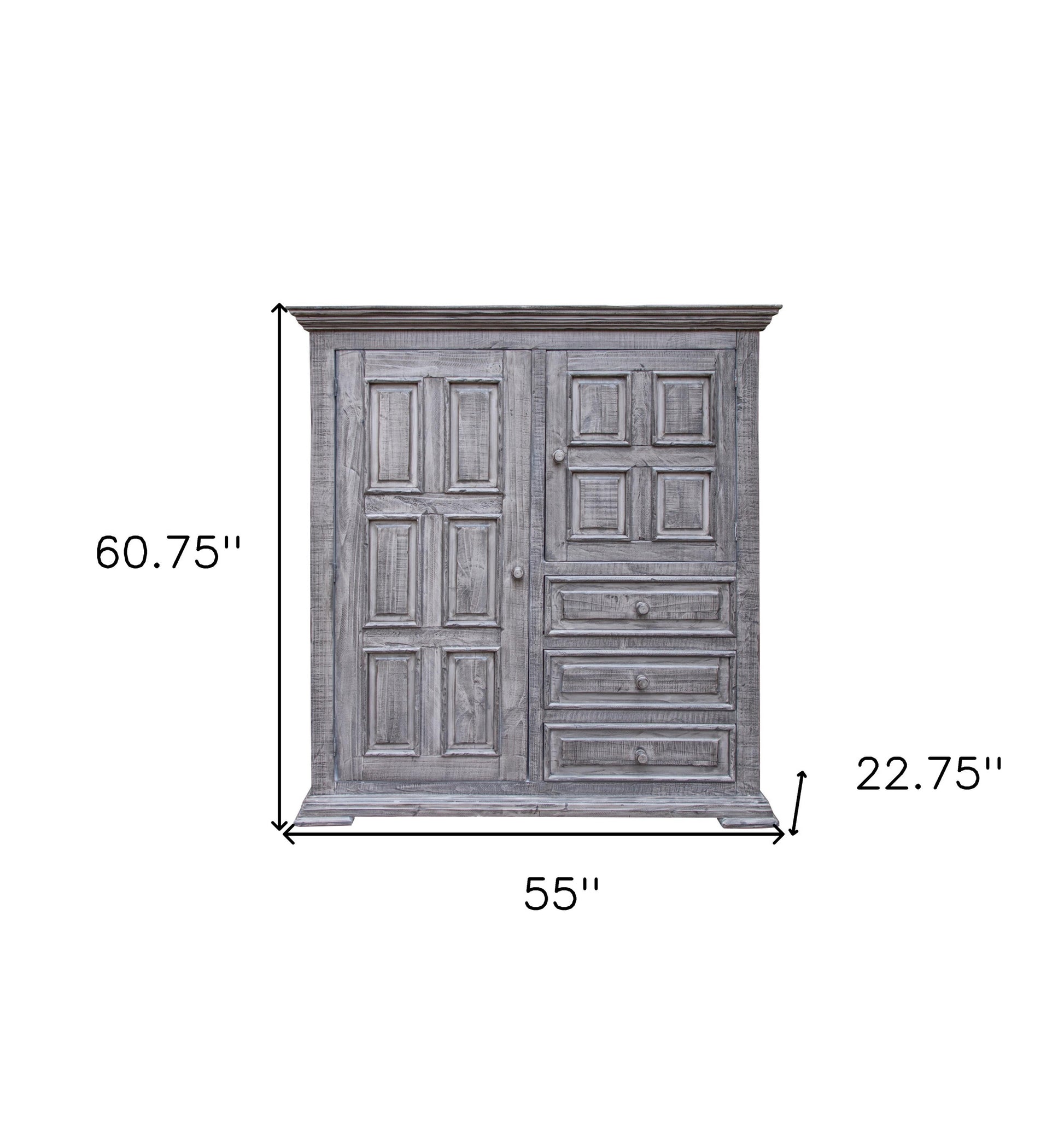 55" Gray Solid Wood Three Drawer Gentlemans Chest