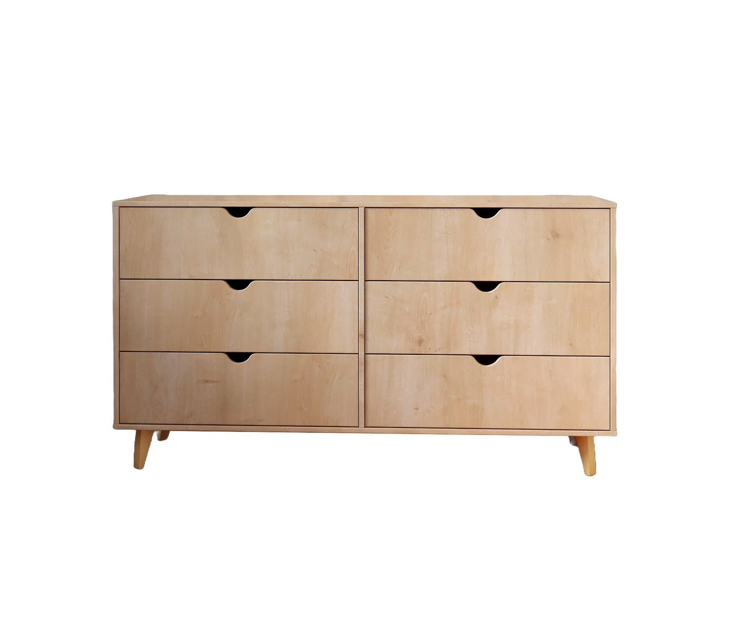 59" Natural Scoop Handle Six Drawer Double Dresser