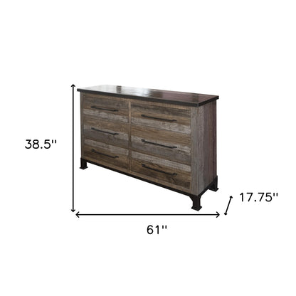 61" Brown Solid Wood Six Drawer Double Dresser