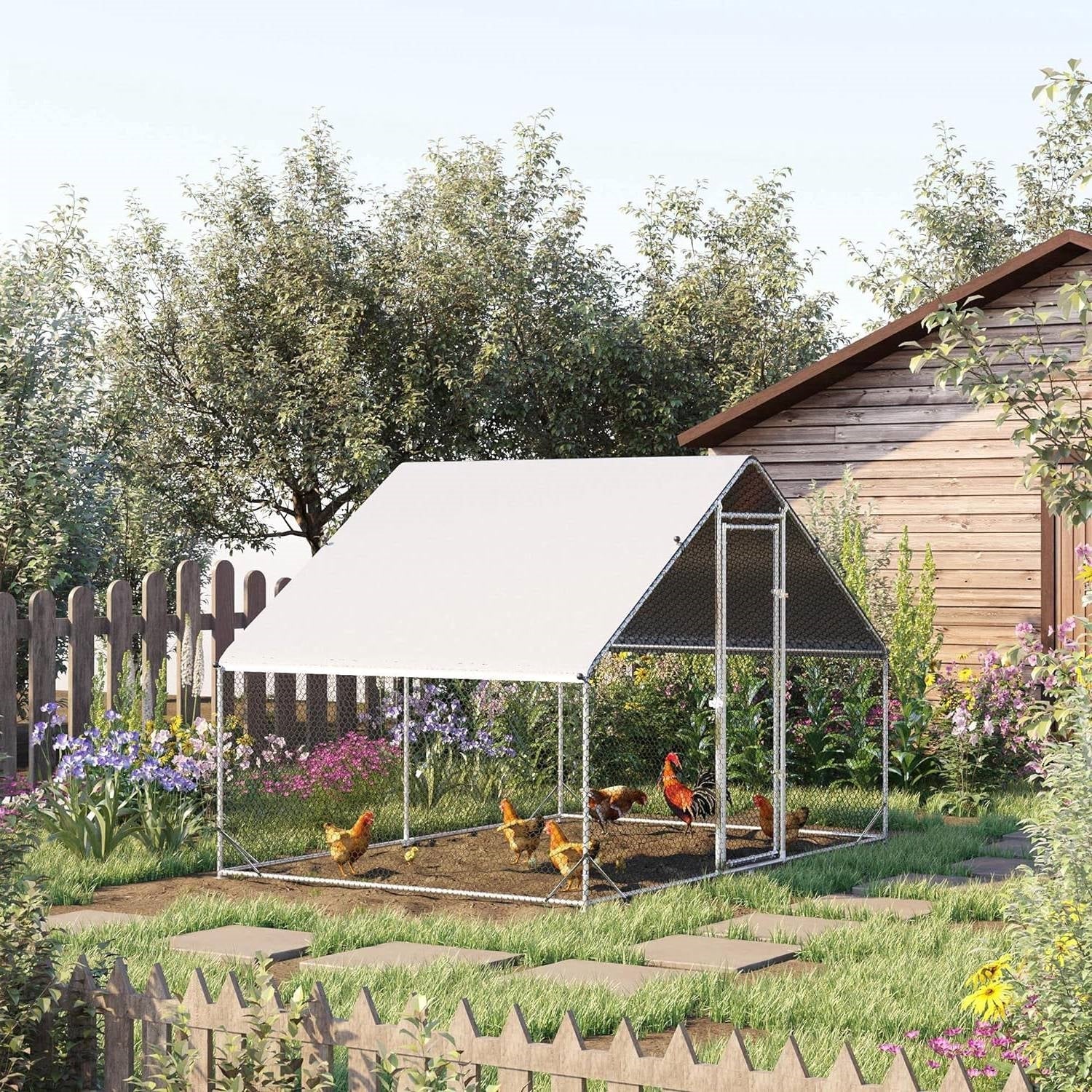 - 9.8 Ft x 6.6 Ft. Outdoor Yard Metal Walk-in Chicken Coop with Waterproof Cover