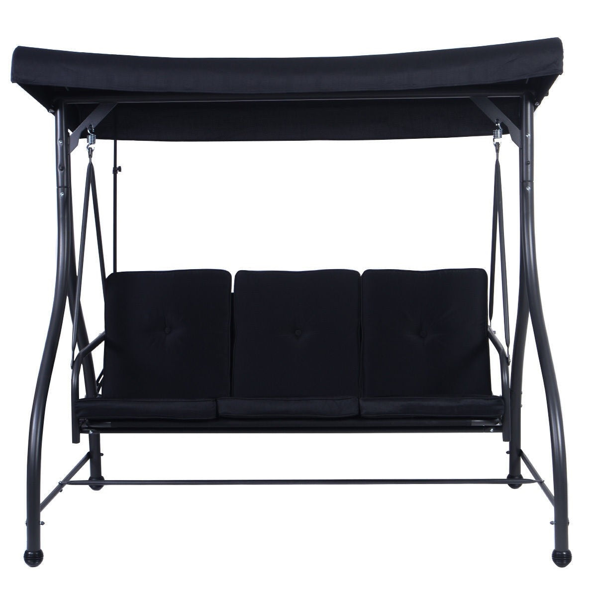 Black Adjustable 3 Seat Cushioned Porch Patio Canopy Swing Chair