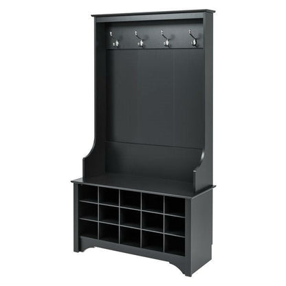 Black Entryway Hall Tree Shoe Cubbie Coat Rack