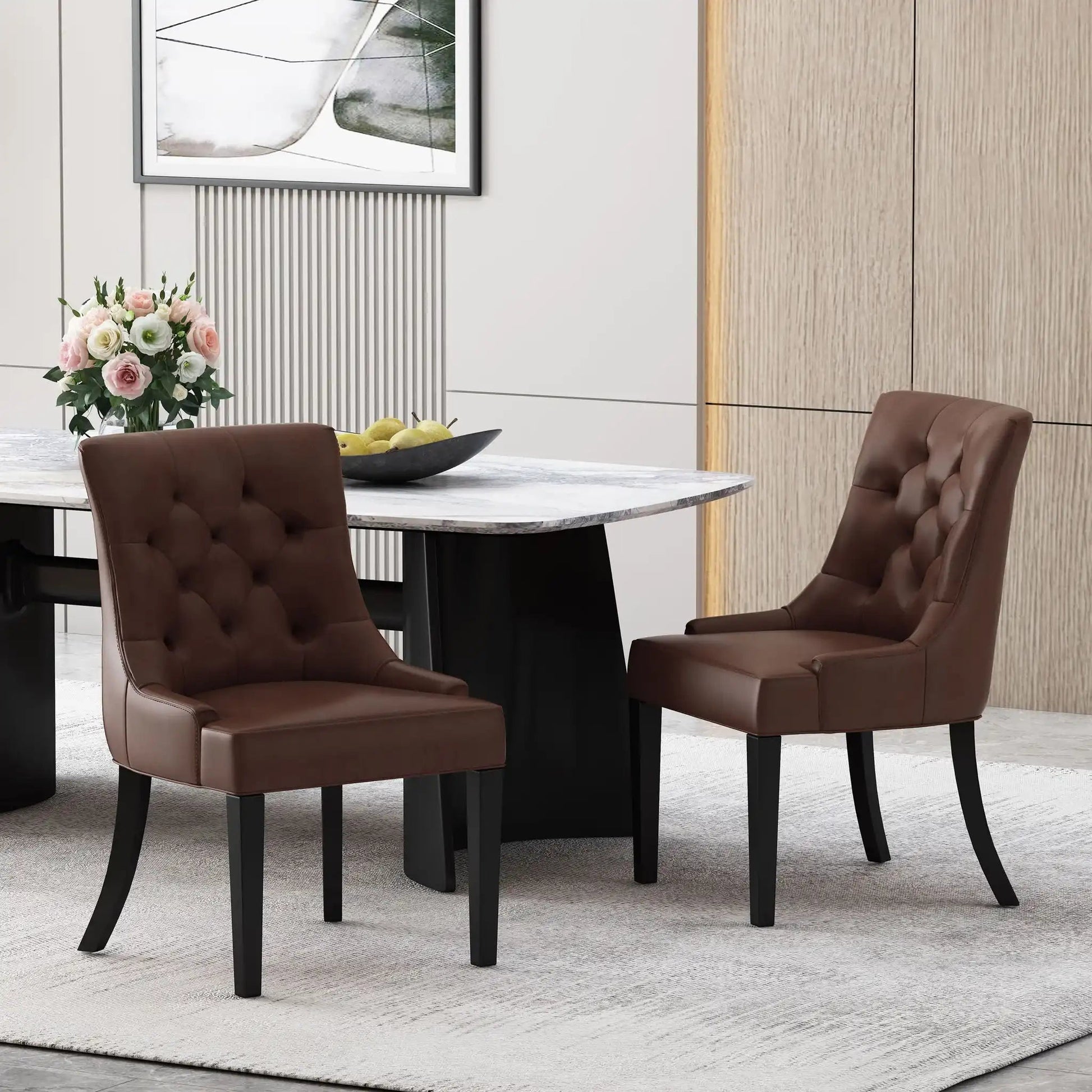 Cheney - Contemporary Dining Chair (Set of 2) With Tufted Diamond Stitching And Sloped Arms - Dark Brown
