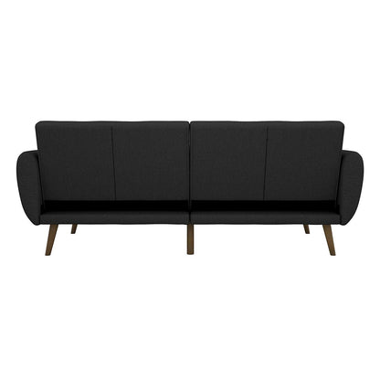 Dark Grey Linen Futon Sofa Bed with Modern Mid-Century Style Wooden Legs