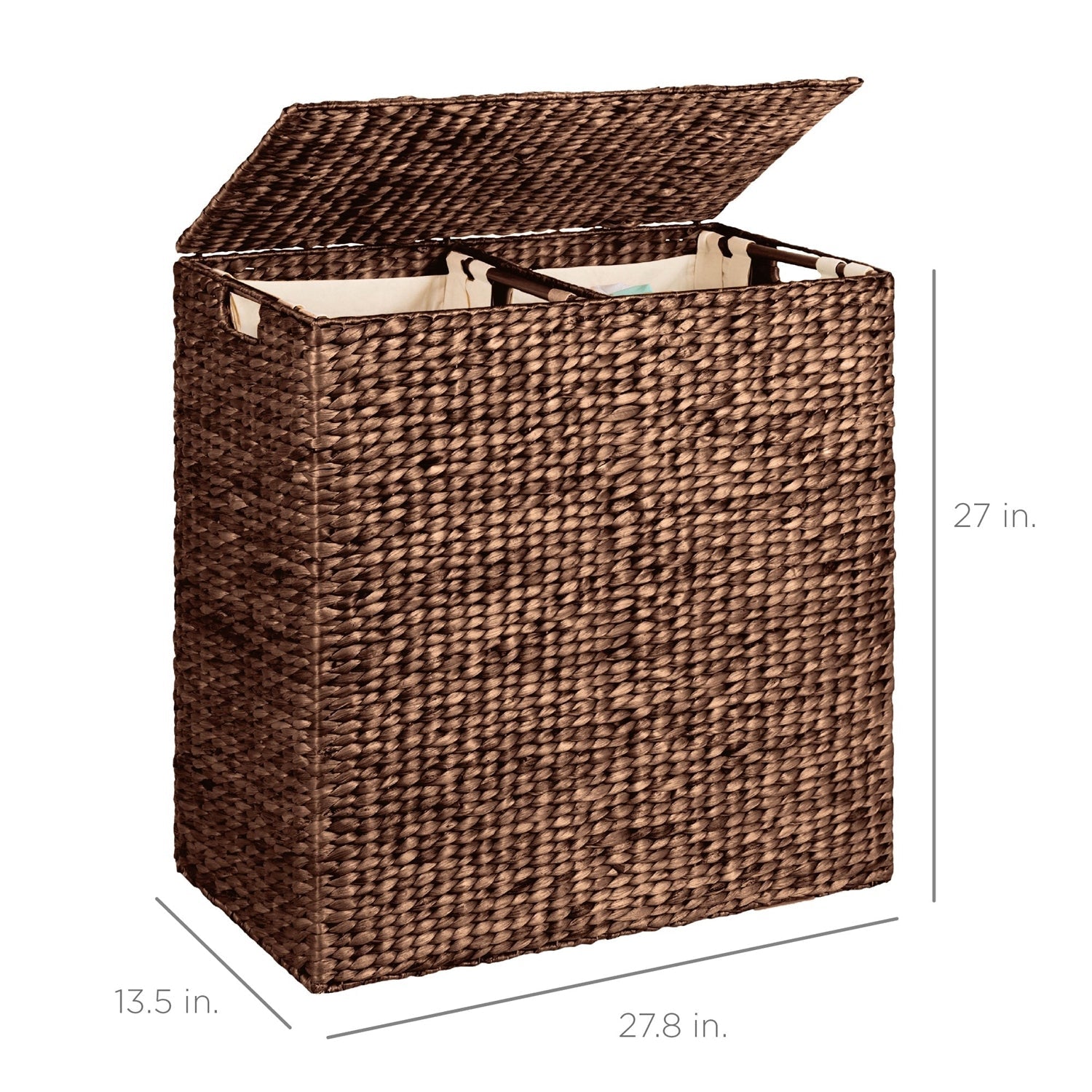 Espresso 2-Bin Handwoven Hyacinth Linen Liner Laundry Hamper w/ Handles
