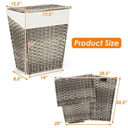 Foldable Handwoven PE Wicker Rattan Laundry Basket Clothes Hamper with Liner