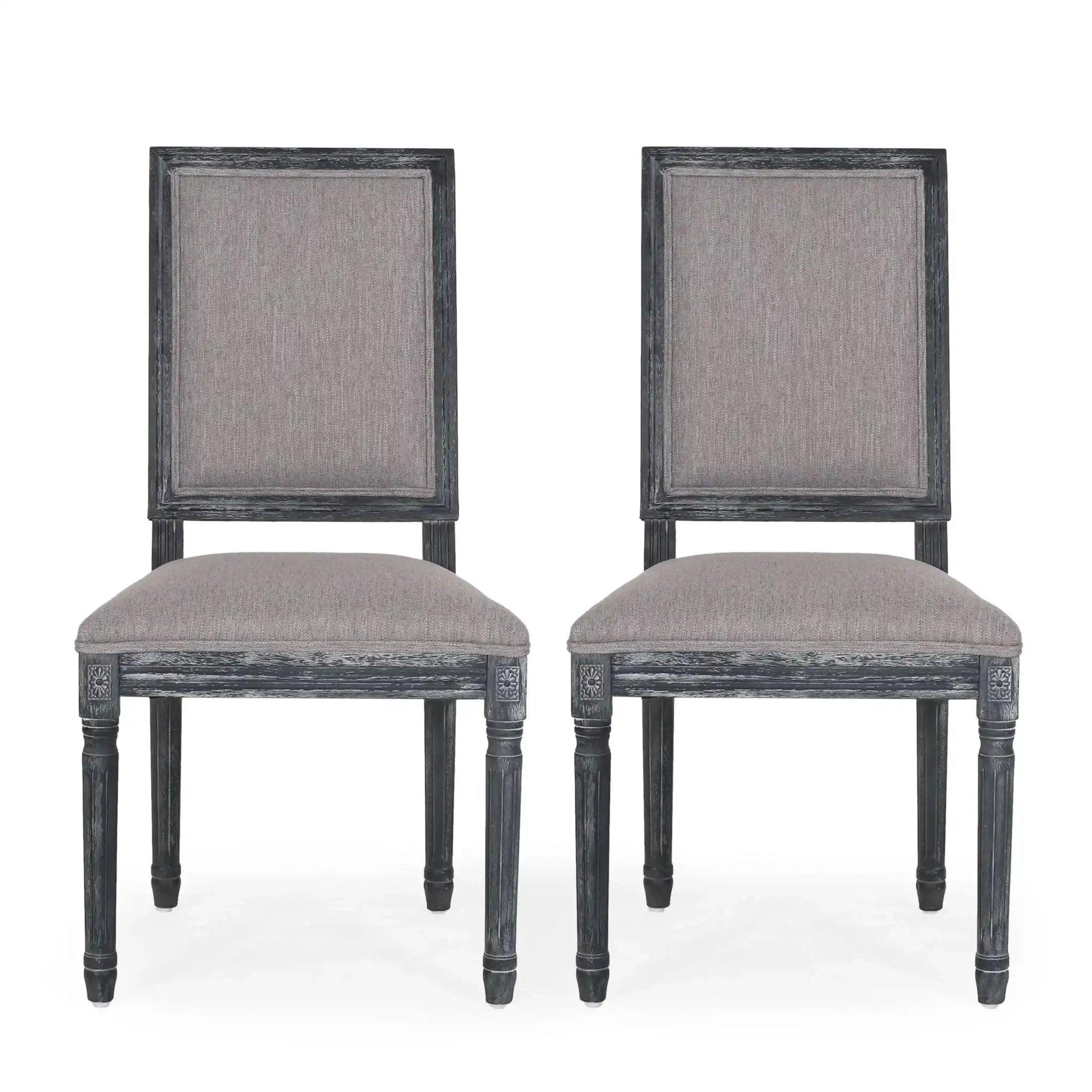 French Country Style Dining Chair Set With Upholstered Seats And Weathered - Gray