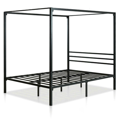 Full size Modern Black Metal Canopy Bed Frame Modern Industrial style metal frame design with canopy top Strong Steel slats prevent mattress sagging and help to increase mattress life Allows for valuable under bed storage with 13” high Clearance Fast and easy assembly Worry free 5 year warranty