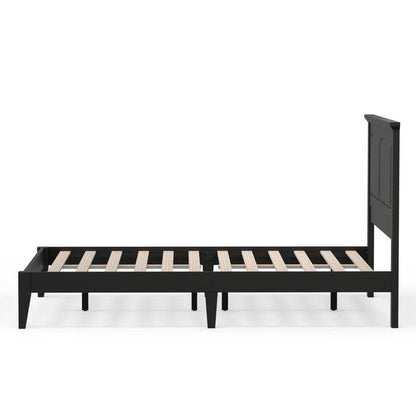 Full Traditional Solid Oak Wooden Platform Bed Frame with Headboard in Black