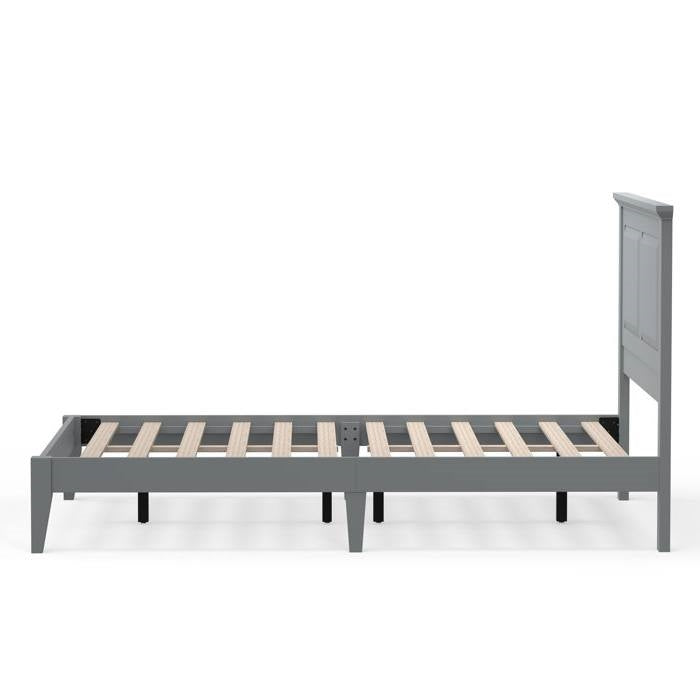 Full Traditional Solid Oak Wooden Platform Bed Frame with Headboard in Grey