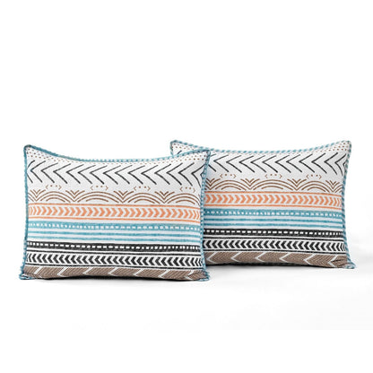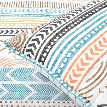 Full/Queen Scandinavian Chevron Teal White Orange Reversible Cotton Quilt Set