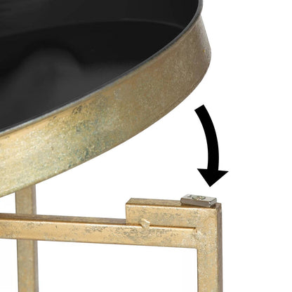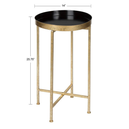 - Gold Finish Metal Round Nightstand End Table with Removable Black Tray Top