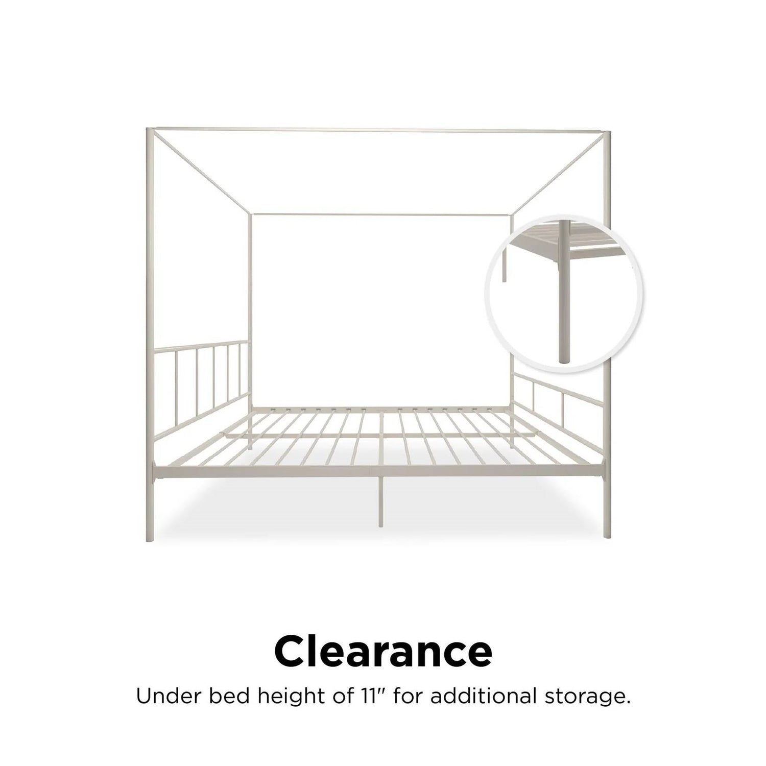 - King size Modern Metal Canopy Bed Frame with Headboard and Footboard in White