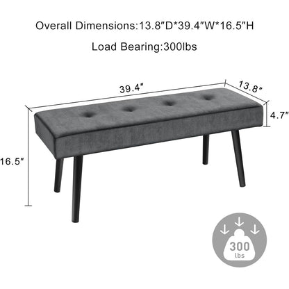 - Mid-Century Grey Corduroy Upholstered End of Bed Bench with Black Metal Legs