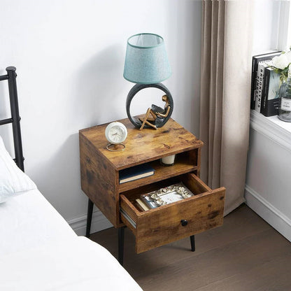 - Mid Century Modern End Table Nightstand in Rustic Brown Black Wood Finish