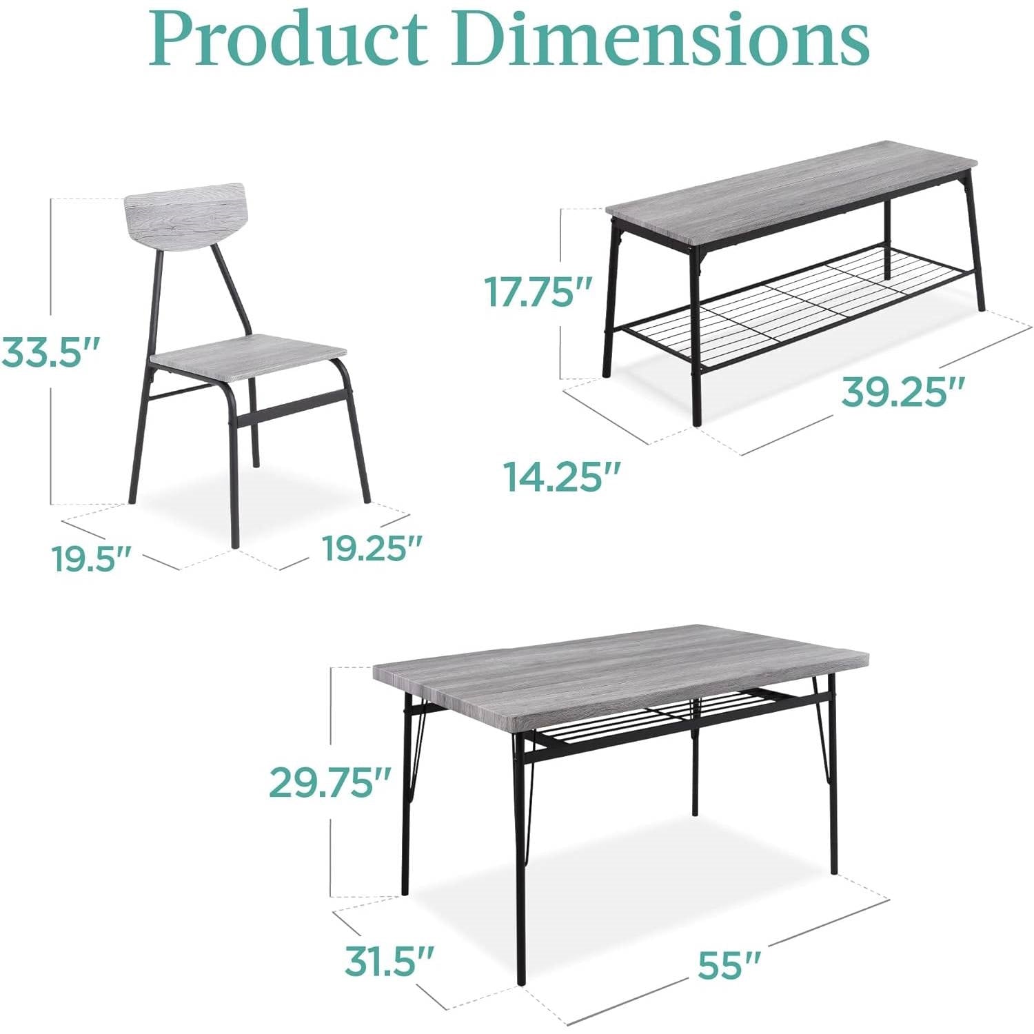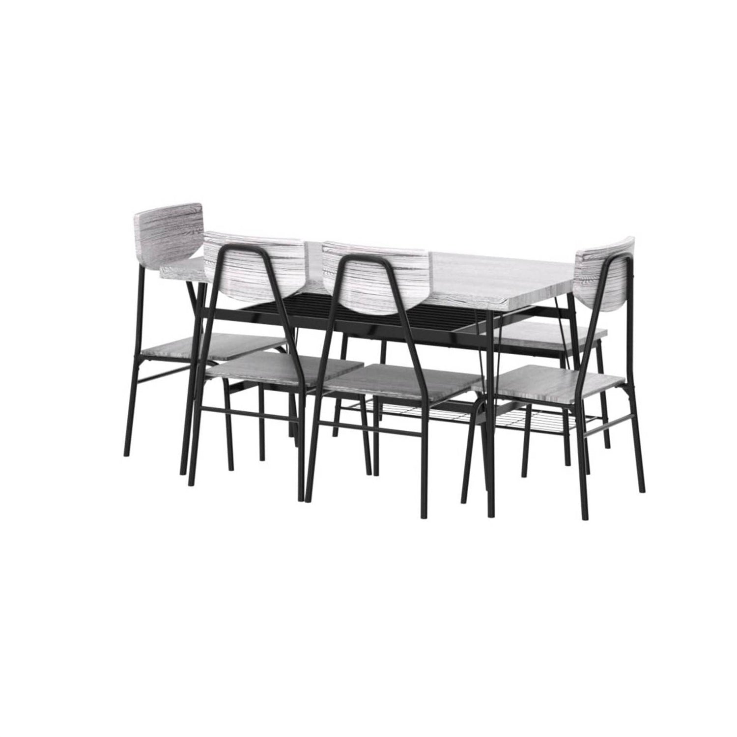- Modern 6-Piece Dining Set with Grey Wood Top Table 4 Chairs and Storage Bench