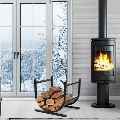 - Modern Classic Black Steel Firewood Rack Log Holder for Indoor or Outdoor Use