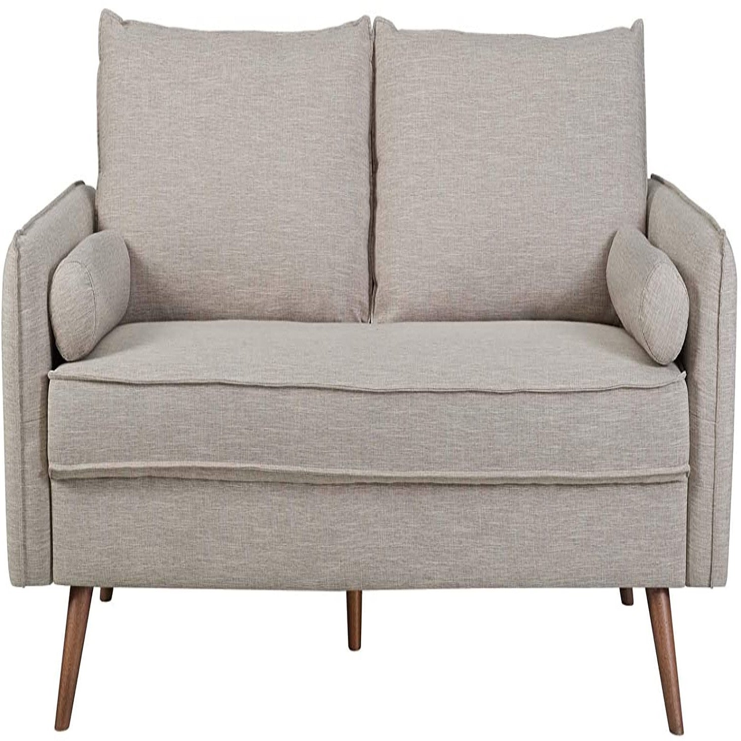 - Modern Couch Beige Upholstered Sofa with with Mid-Century Style Wood Legs