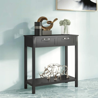 Modern Entryway Accent 2 Drawer Sofa Side Table Black