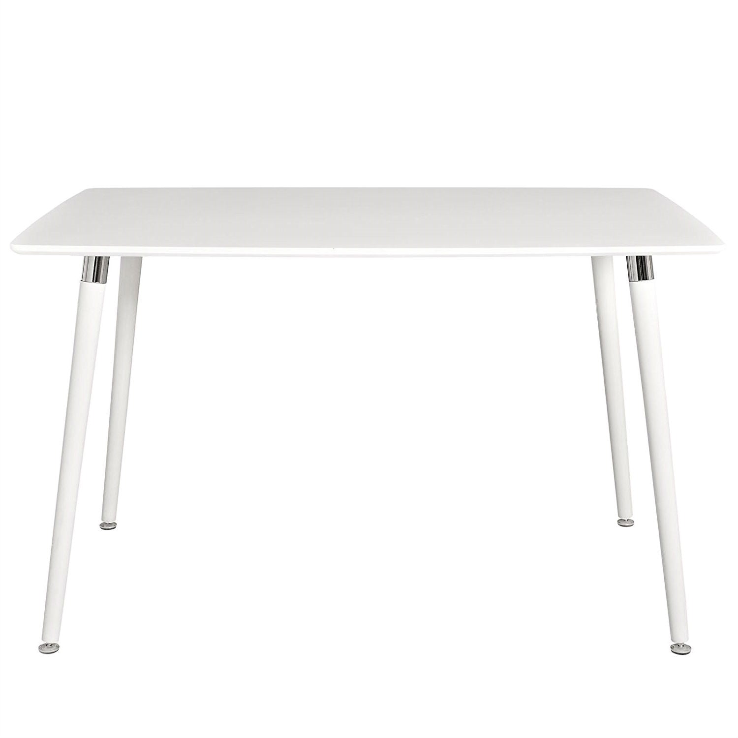 Modern Mid-Century Style Dining Table in White with Wood Legs Modern Dining Table Solid Beech Wood Legs Fiberboard Top